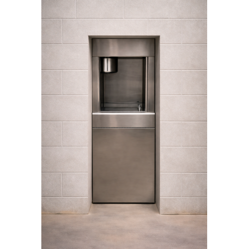 Питьевая станция в составе бесконтактного питьевого фонтана и ботлфиллера в исполнении для установки в стеновую нишу.